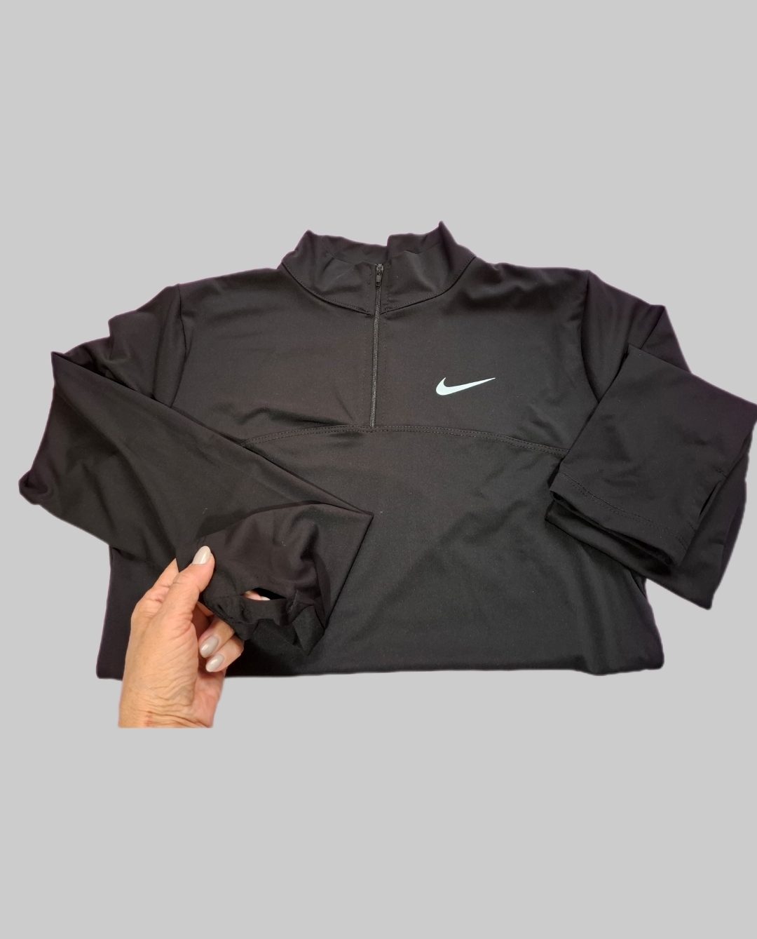 تیشرت نیم زیپ بلند نایک، یقه ایستاده، برشدار، آستین فینگردار، با جنس لطیف و کشسان، تنخور جذب ،برش و دوخت زیبایی داره و همه جا میتونی بپوشی، تو باشگاه ، تو خیابون برای پپاده روی و ...